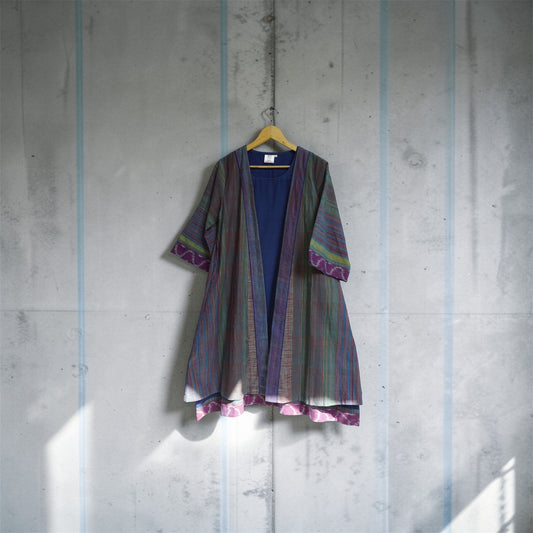 Handloom Cotton Multicolor Striped Flared Yellow Dress cum Open Shrug – Rangila Dhaga D51