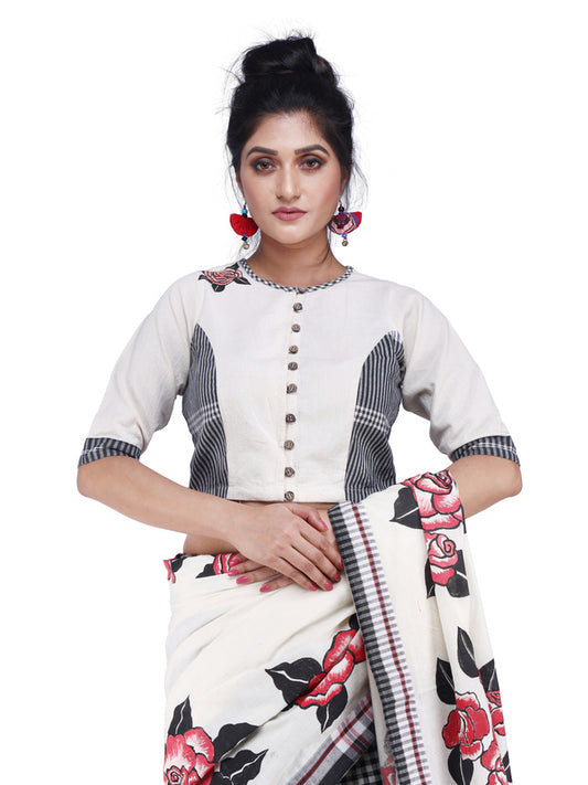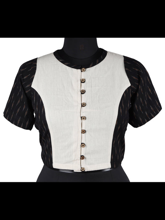 Blouse Ikkat Fashion Handloom Cotton Fabric with Sleeves Black and white BL7