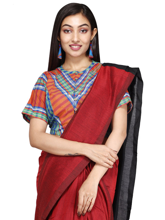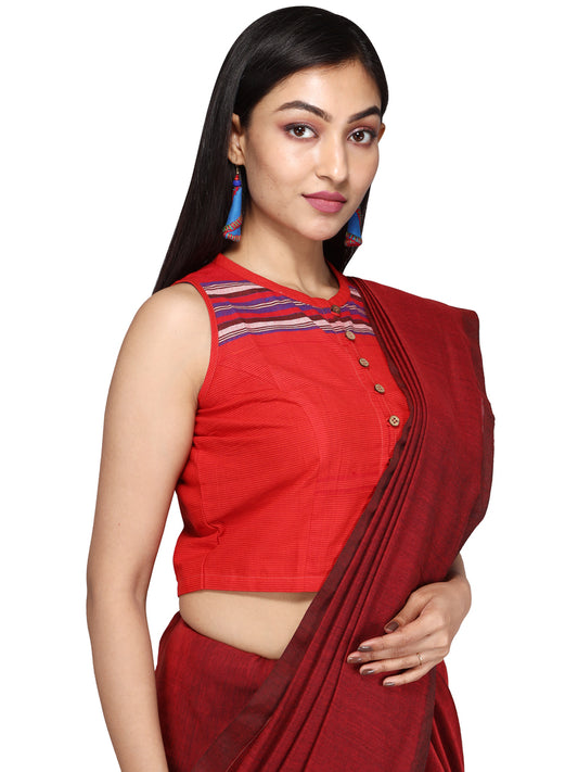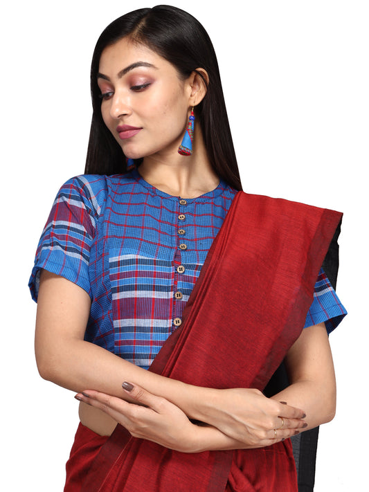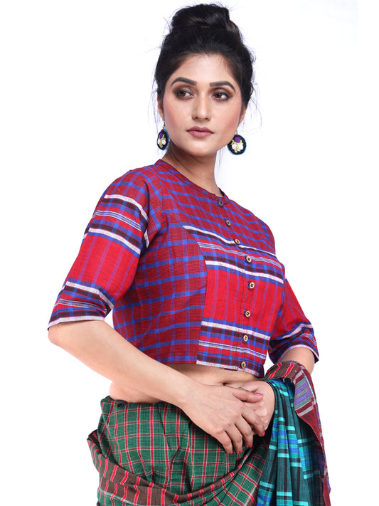 Blouse Gamcha Fashion Handloom Cotton Fabric with Half Sleeves Red BL1