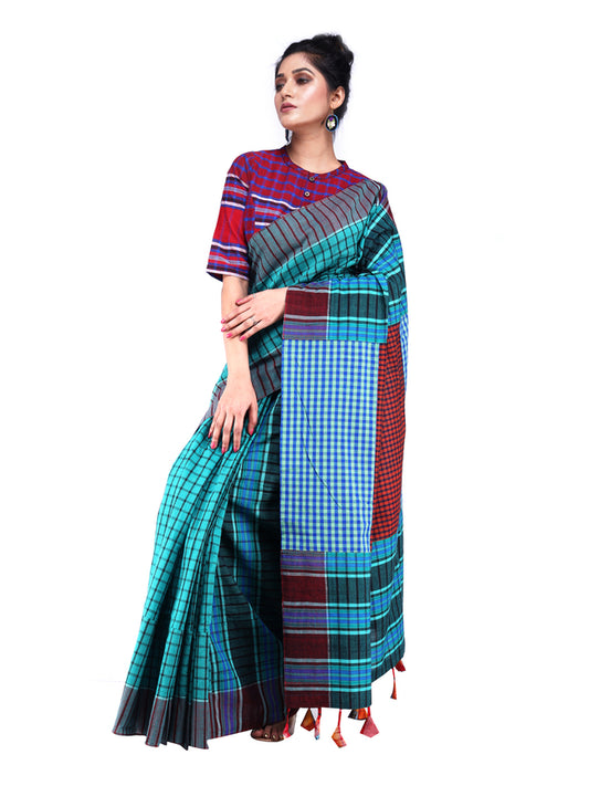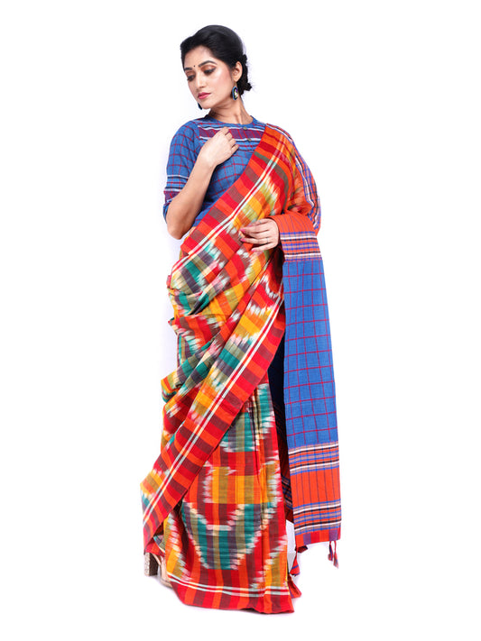 Jaladhara Ikkat Elegance Cotton Saree Green and Orange GS10