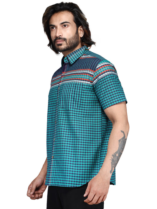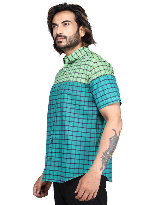 Shirt Men Gamcha Fashion Handloom Fabric Green SH01