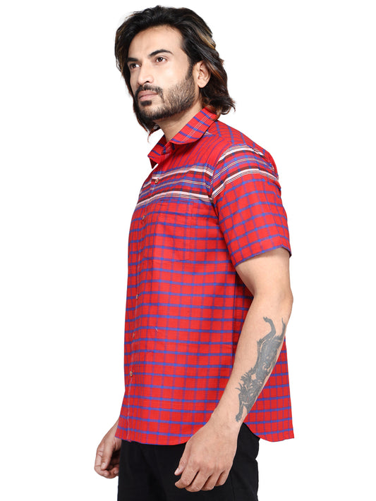 Shirt Men Gamcha Fashion Handloom Fabric Red SH02
