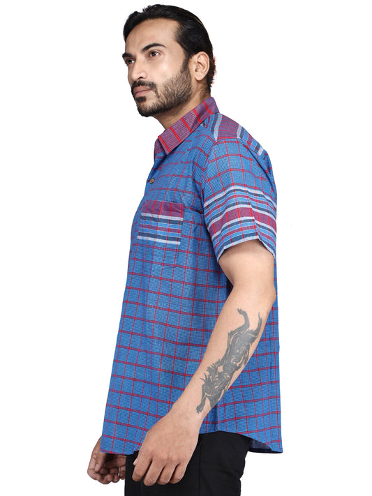 Shirt Men Gamcha Fashion Handloom Fabric Blue SH03