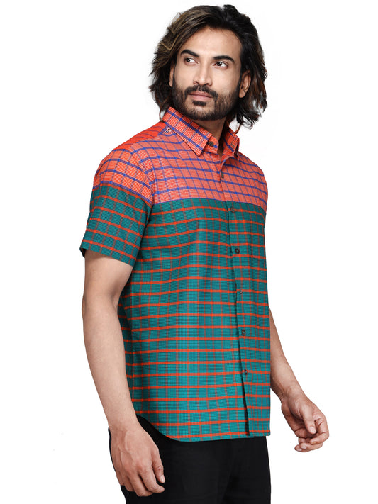 Shirt Men Gamcha Fashion Handloom Fabric Red & Green SH04