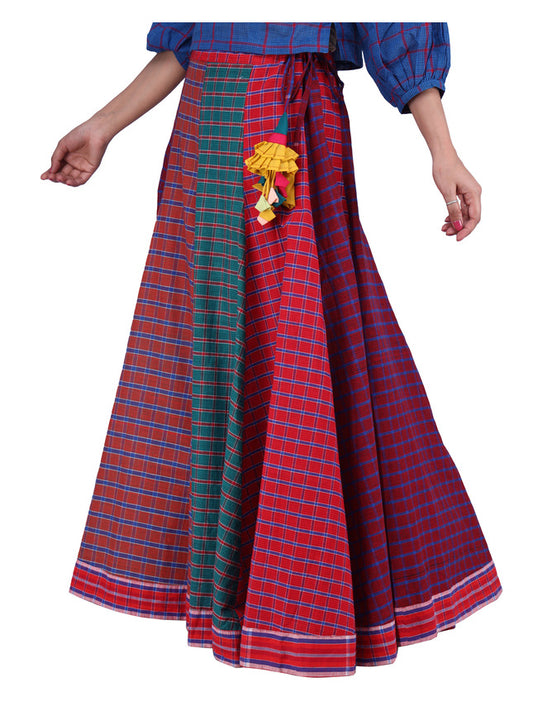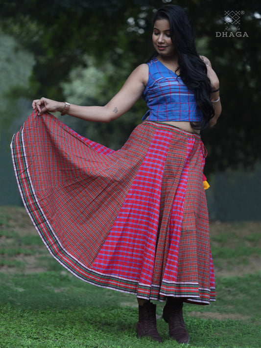 Skirt Long Gamcha Fashion Handloom Cotton Red SHR209