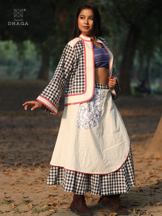 Skirt Long Hand-embroidered Gamcha Fashion Handloom Cotton Black and White