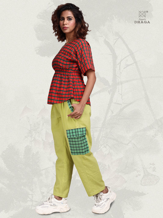 Oversized Top For women Gamcha Fashion Handloom Cotton Green (TOP04)