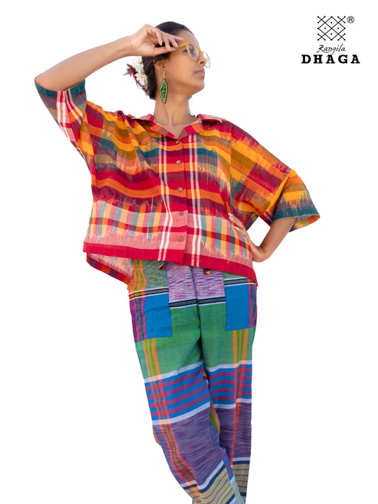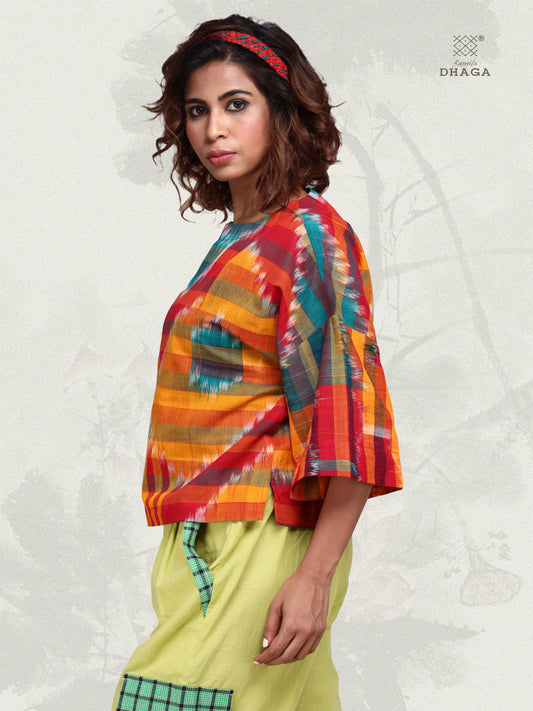 Oversized Top For women Ikkat Gamcha Fashion Handloom Cotton Multicolor (TOP05)