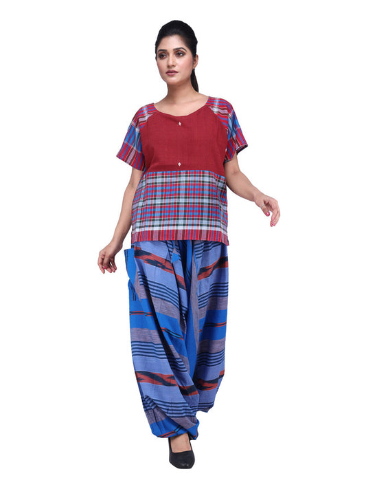 Top Long Gamcha Fashion Handloom Cotton Merun TOP02