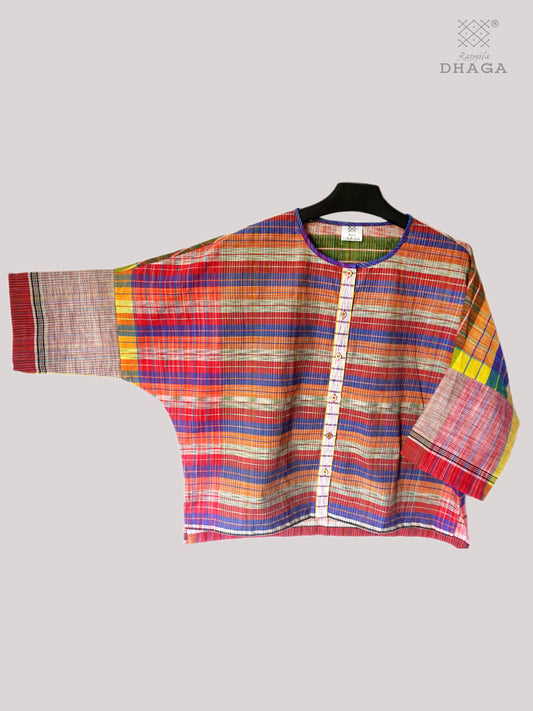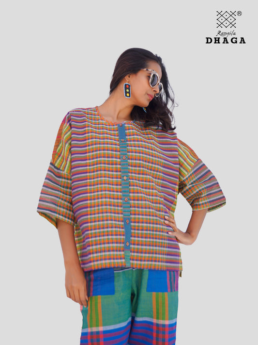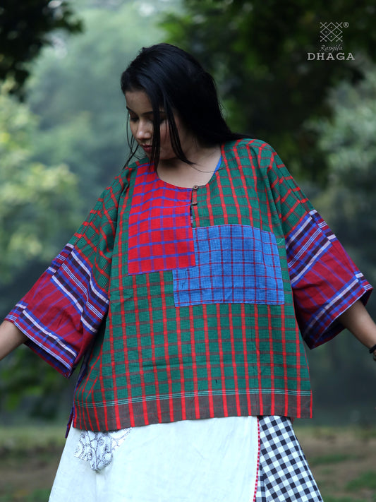 Oversized Top For women Patchwork Gamcha Fashion Handloom Cotton Multicolor (TOP12) (Copy)