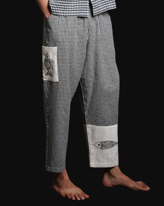 Men’s Handpainted Black & White Check Gamcha Cotton Pants
