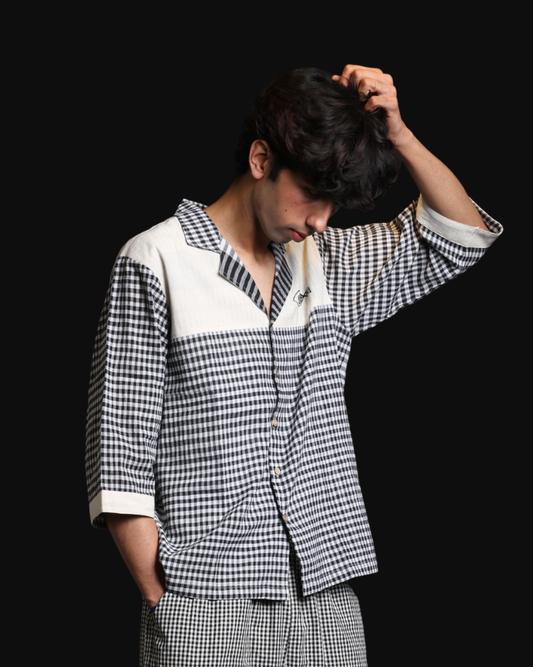 Unisex Handpainted Black & White Check Gamcha Cotton Shirt
