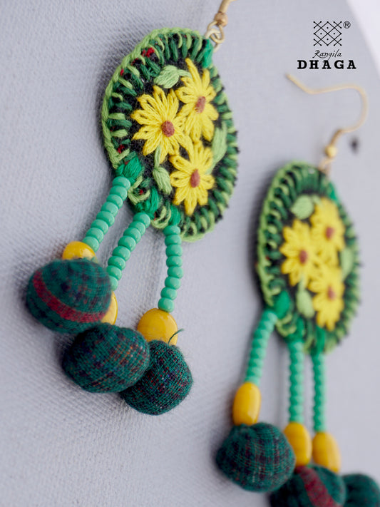 Handembroidered Sunflower Gamcha Fabric Earrings - Yellow (E010)