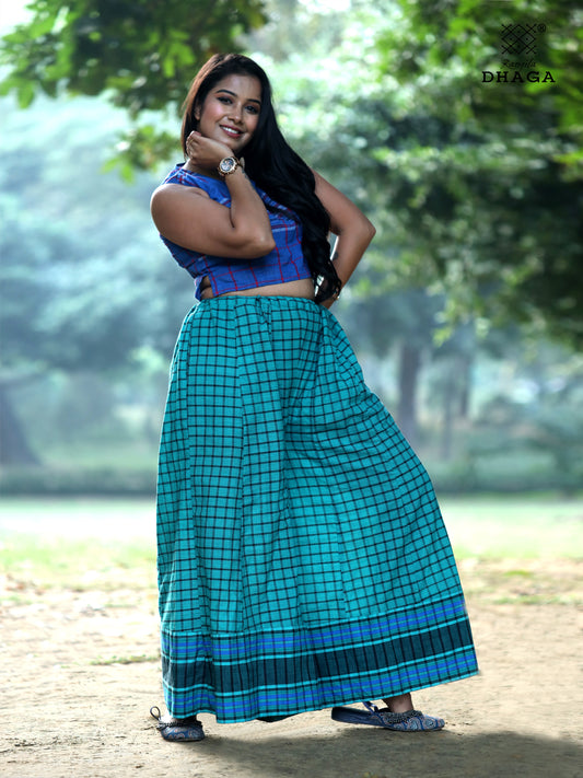 Palazzo Handcrafted Gamcha Fashion Handloom Fabric Green